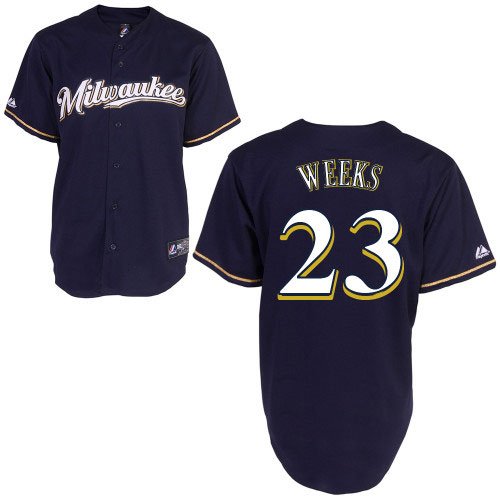 MLB Men's Milwaukee Brewers Rickie Weeks Navy Short Sleeve 6 Button Synthetic Replica Baseball Jersey Spring 2012 (Navy, Medium) by Majestic