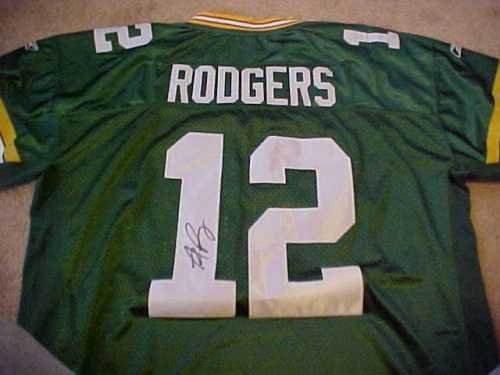 Authentic Aaron Rodgers Hand Signed Green Bay Packers Reebok Jersey.Comes with Photo of Aaron Rodgers Signing the Jersey!.Size fifty two.Official On-Field Reebok Jersey!. THIS IS AN AUTHENTIC AARON RODGERS GREEN BAY PACKERS FOOTBALL JERSEY AUTOGRAPHED BY AARON RODGERS. THIS OFFICIAL REEBOK JERSEY WAS HAND SIGNED AND THE SIGNATURE IS NOT A PRINT. THE CERTIFICATE OF AUTHENTICITY COMES WITH A PHOTO OF AARON RODGERS SIGNING THE JERSEY. EACH AUTOGRAPHED ITEM COMES WITH A CERTIFICATE OF AUTHENTICITY AND MATCHING TAMPER-PROOF HOLOGRAM FROM AUTHENTIC-GRAPH.. ... Read more Aaron Rodgers Hand Signed Autographed Authentic Green Bay Packers Reebok Jers...