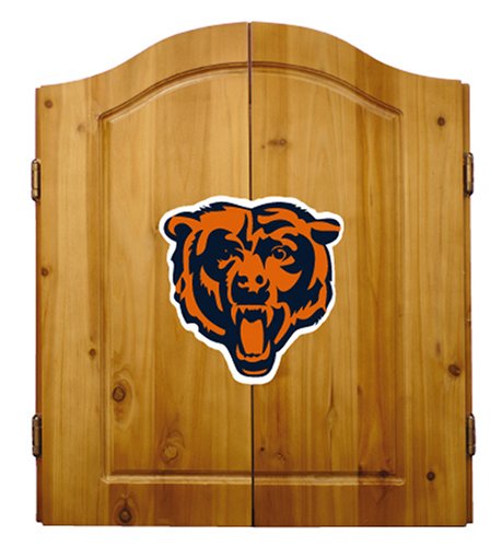 20-inches wide by 24-3/5-inches high with the support of 4-inches deep.Six darts with workforce name on the flights and NFL logo flights.All mounting hardware incorporated.All pure 18-inch bristle dart board.Solid pine wood dartboard cabinet. The Dart cabinet and dart board sets come with everything you need so kill somewhat time ahead of or after the game. With the stable pine cabinet, real bristle dart board and 6 steel tip darts this isn't your moderate dartboard. Then once more you are not a standard fan. Set consists of: Solid pine dart cabinet, bristle dart board. three black and three silver darts with group name on barrell, League Logo flights, chalk and eraser. All mounting hardware included.. ... Read more Imperial Chicago Bears Licensed Solid Pine Cabinet and Bristle Dartboard Set